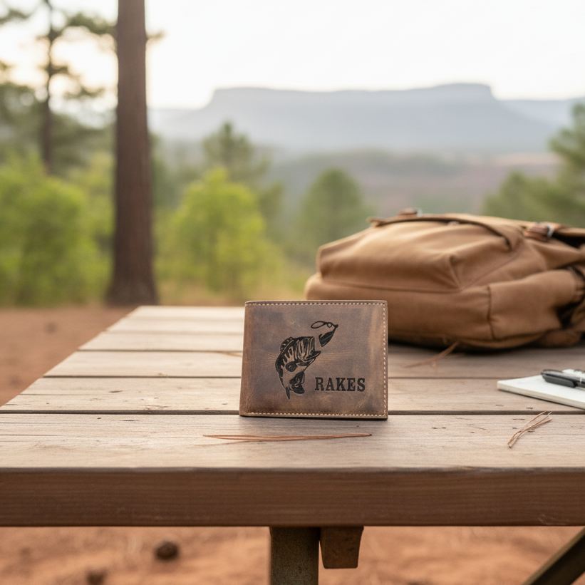FiSHING BIFOLD DISTRESSED LEATHER WALLET