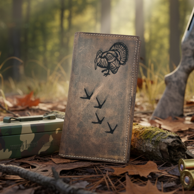 Turkey and Tracks Leather Classic Roper Checkbook Wallet by Miller's Leather Shop
